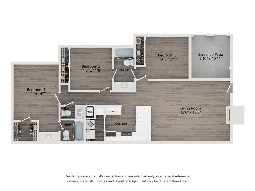 Modelo de apartamento: B3Desde $1,5742 Dormitorios, 2 Baños, 1099 sq ftDisponible January 28, 2026![]()
