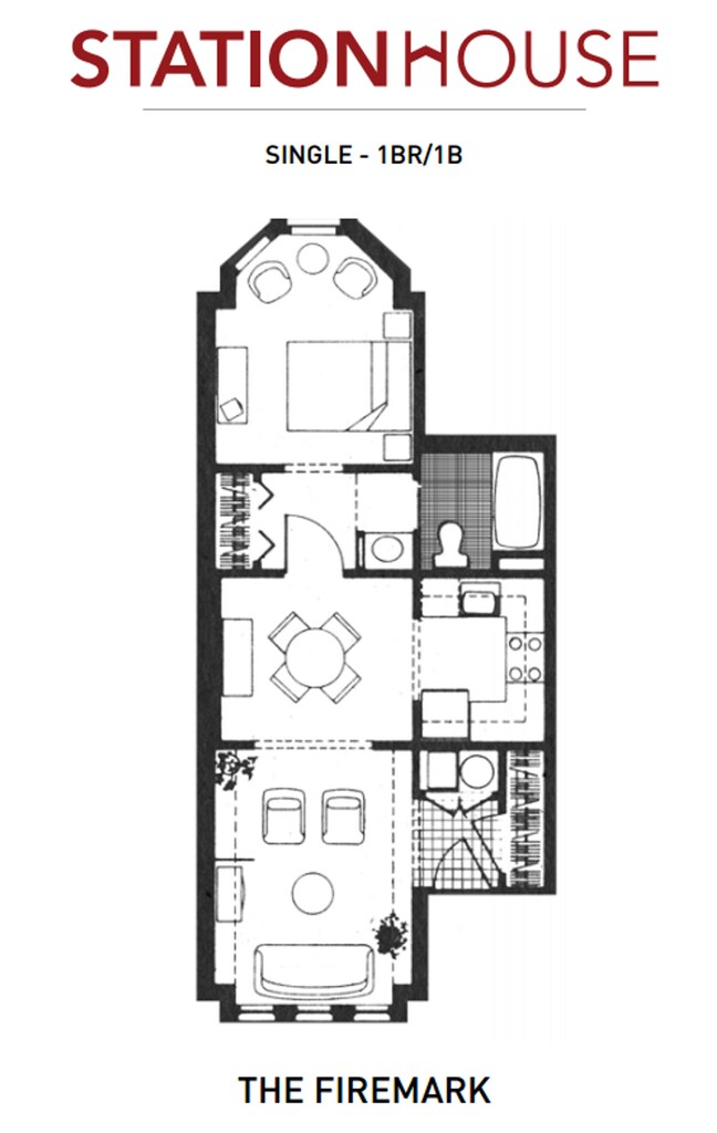 Modelo de apartamento: The Firemark1 Dormitorio, 1 Baño, 540 sq ftDisponible AhoraPlanosFotos![]()