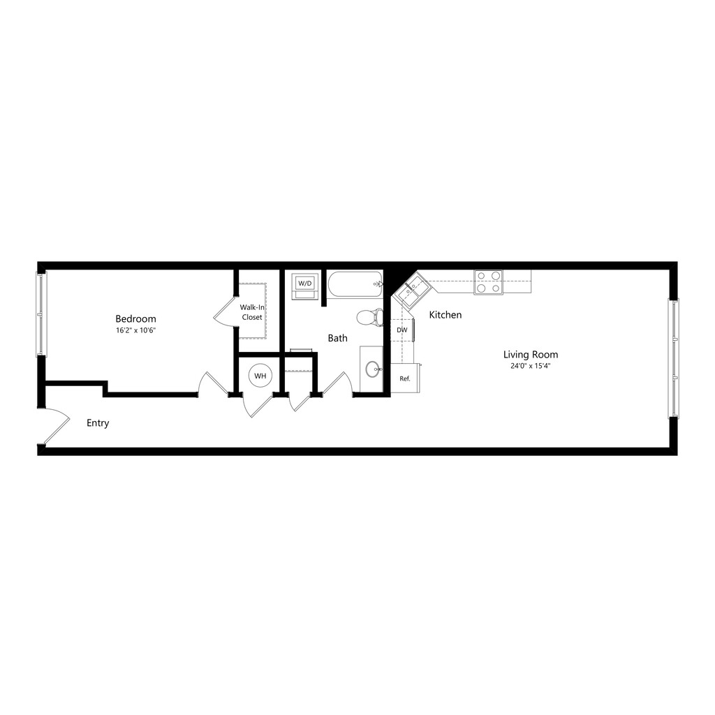 1 Dormitorio, 1 Baño, 930 pies²Disponible AhoraEl más grandeEsta opción tiene las unidades más grandes para este modeloGalería del Modelo