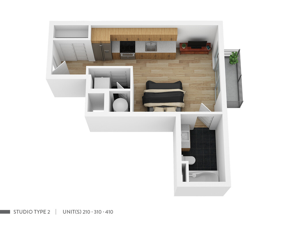 Estudio, 1 Baño, 391 pies²Disponible AhoraGalería del Modelo