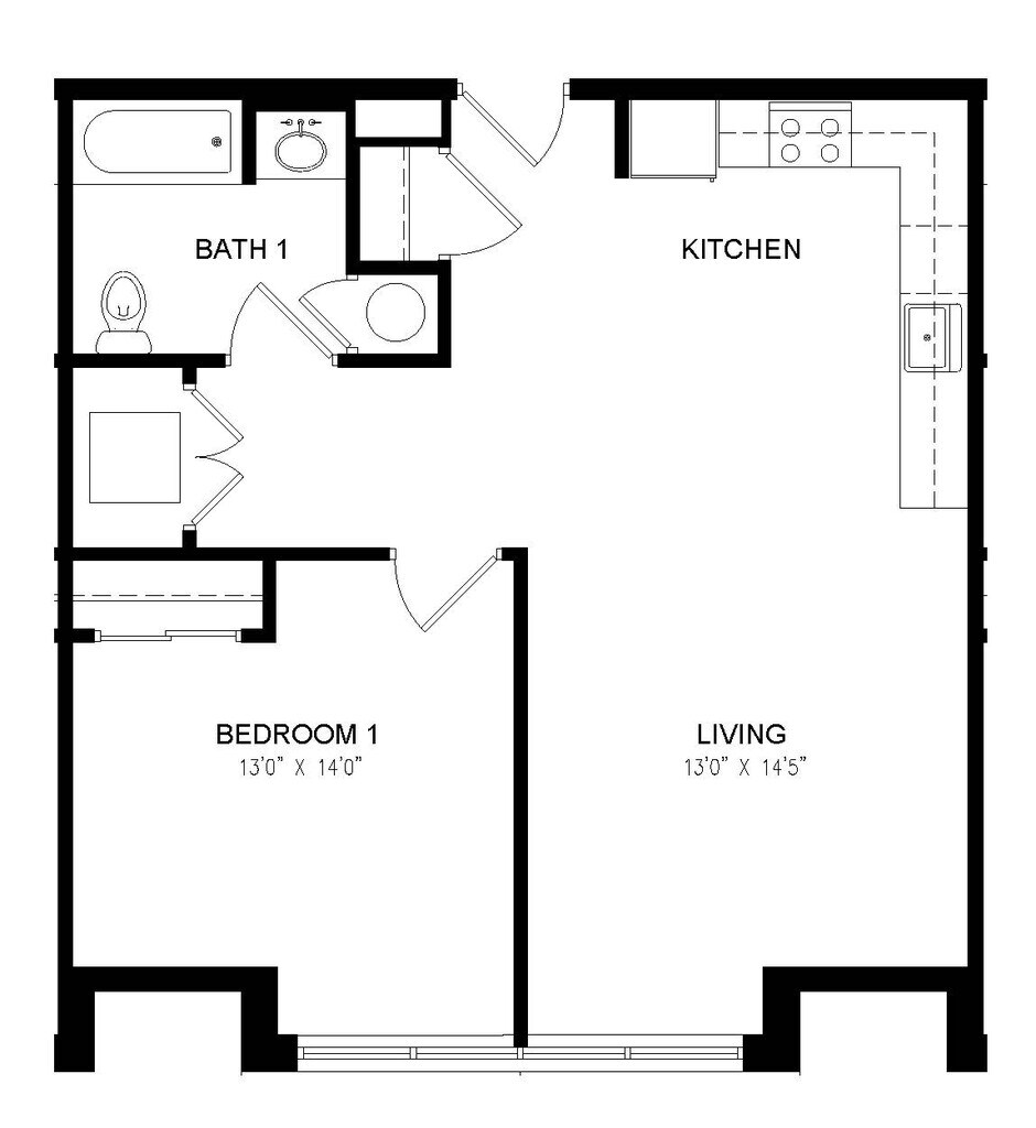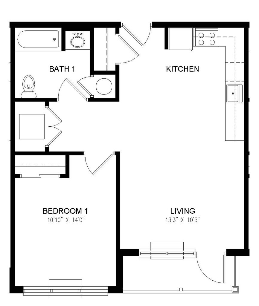 319 221 T One Bedroom One Bath - Plano 1 ![]()