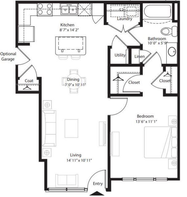 Estudio, 1 Baño, 623 pies²Disponible AhoraGalería del Modelo