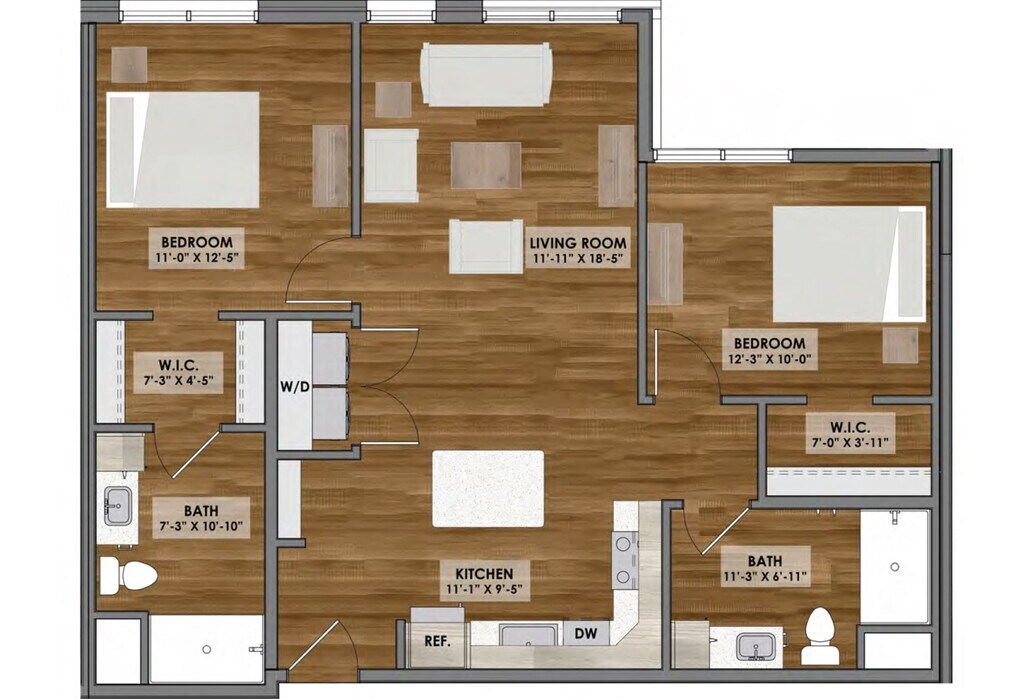 1 Dormitorio, 1 Baño, 729 pies²Disponible AhoraGalería del Modelo
