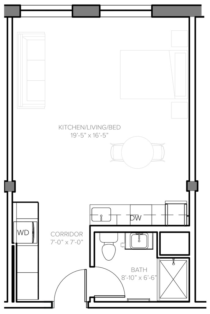 Estudio, 1 Baño, 467 pies²Disponible AhoraGalería del Modelo
