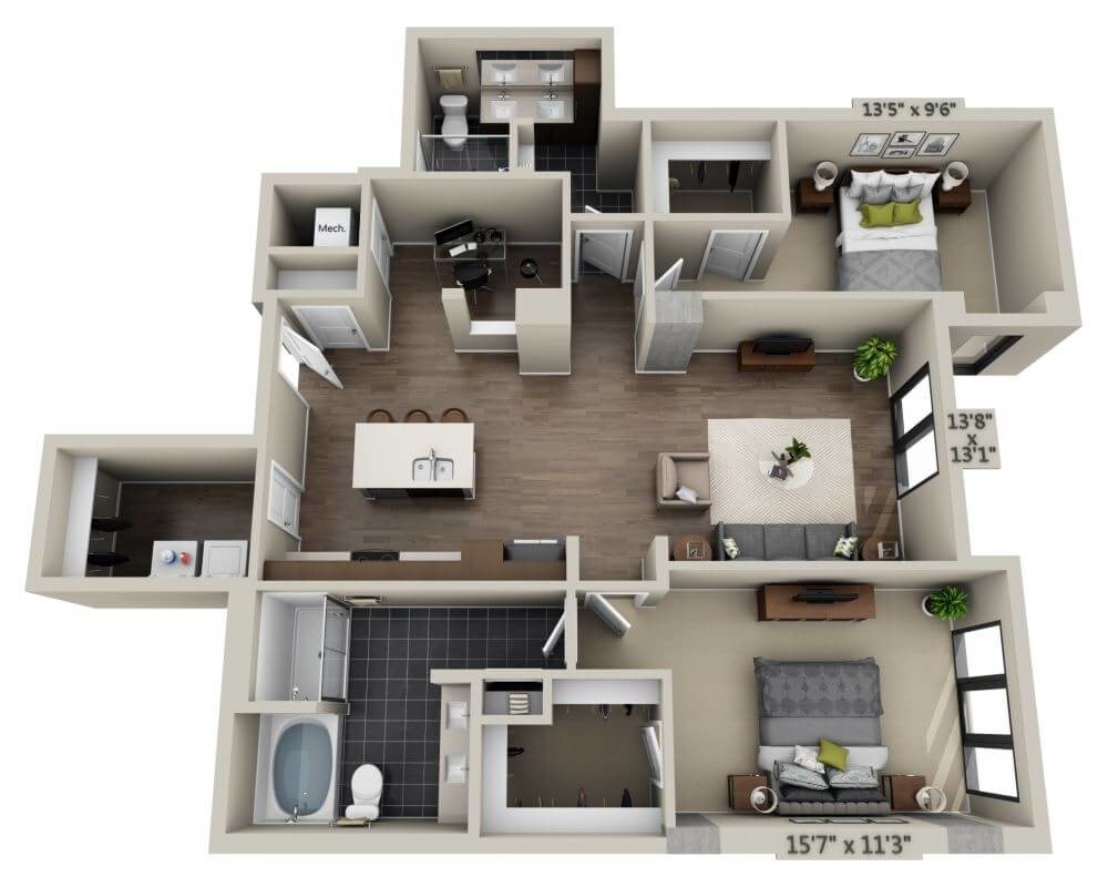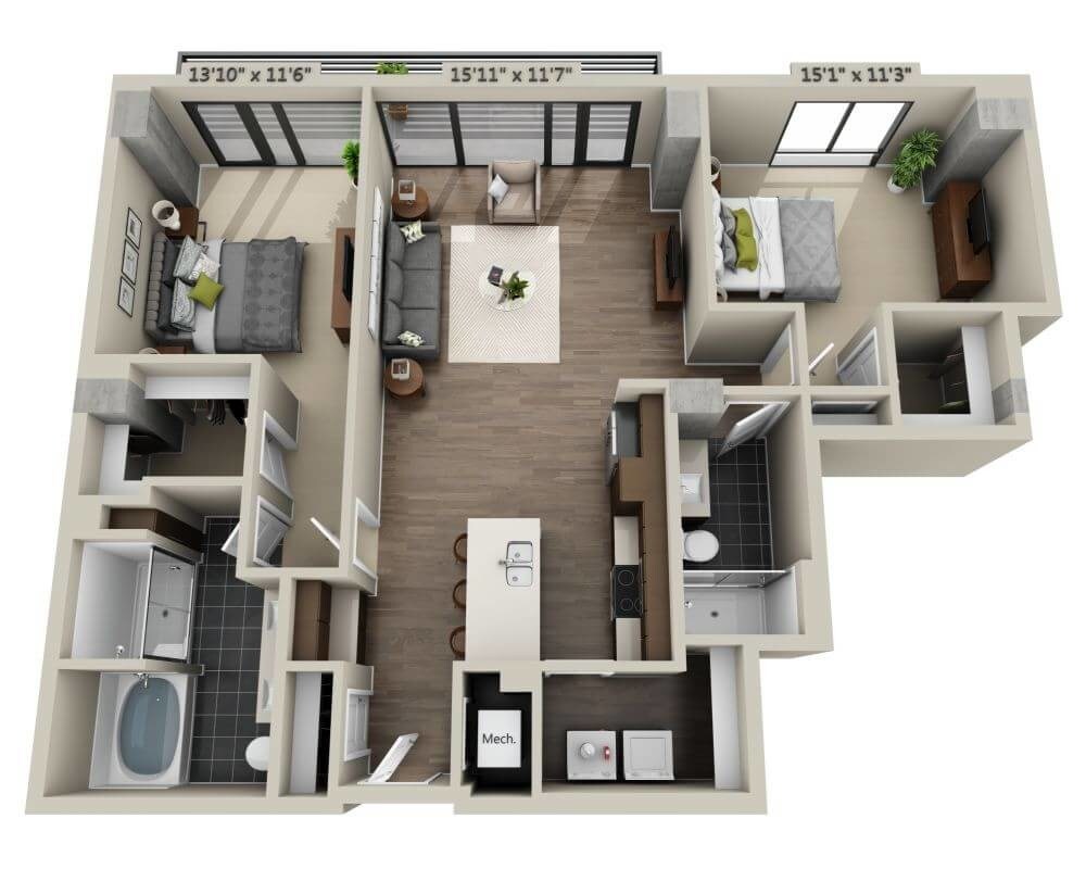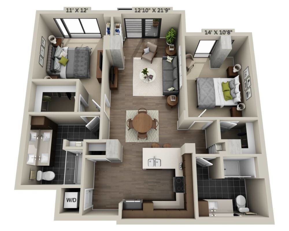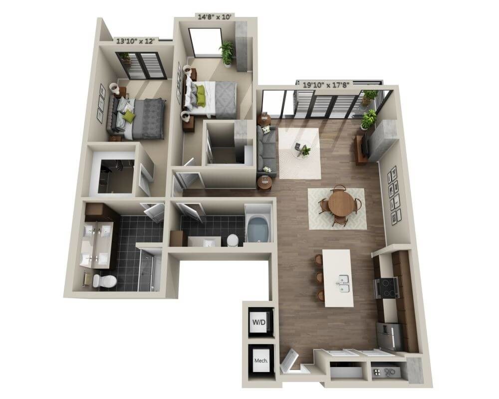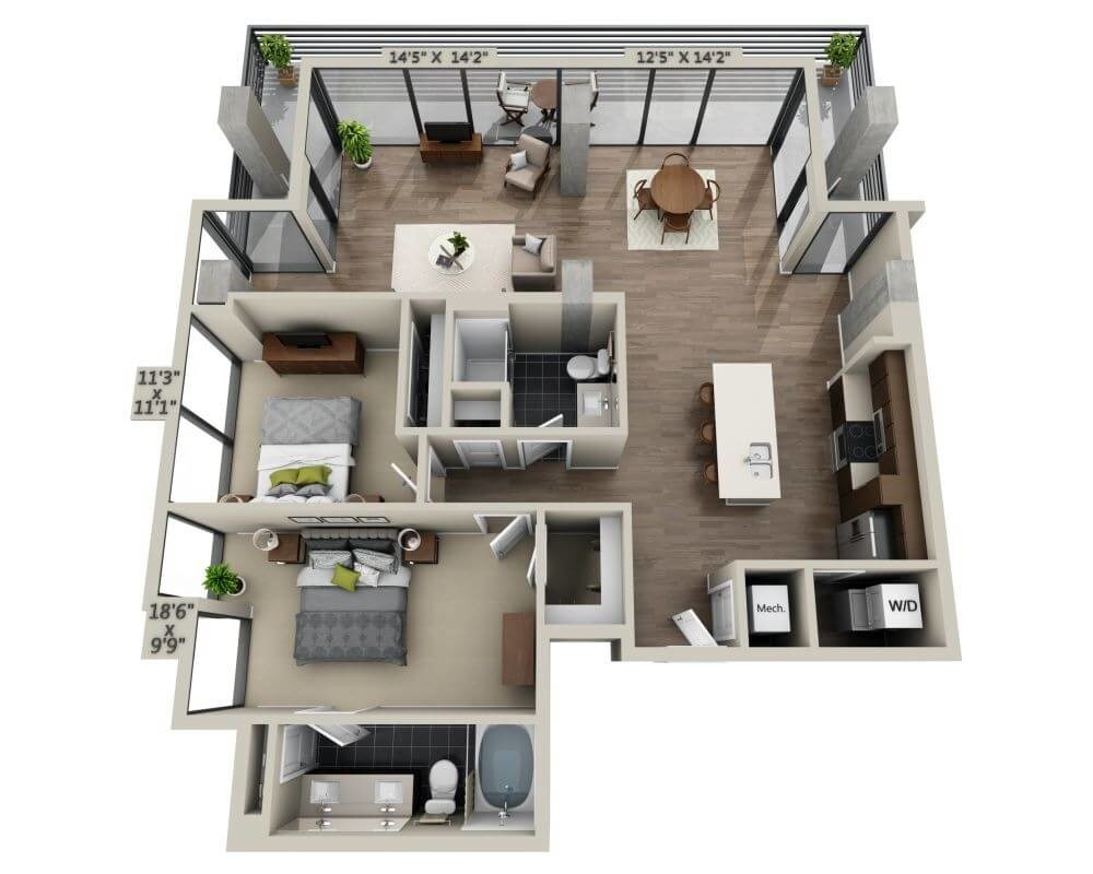 Modelo de apartamento: E1AB$1,988Estudio, 1 Baño, 604 sq ftDisponible Ahora![]()