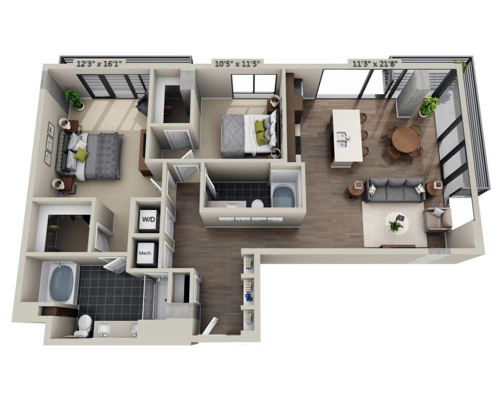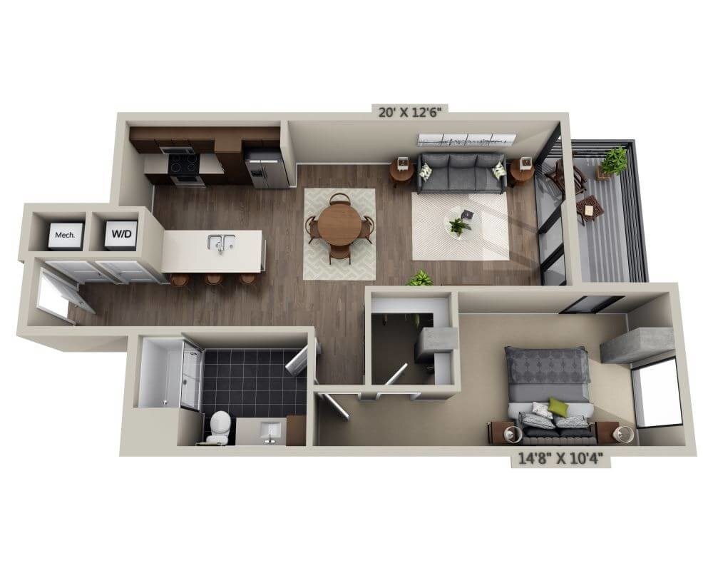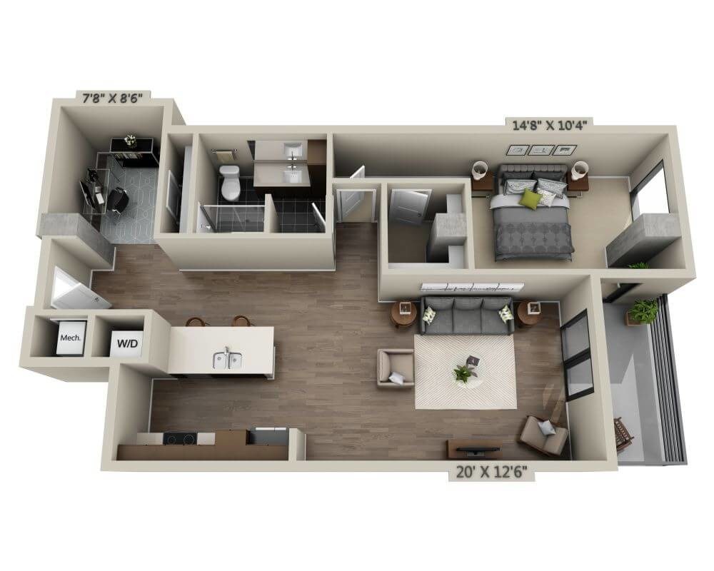 Estudio, 1 Baño, 604 pies²Disponible AhoraGalería del Modelo