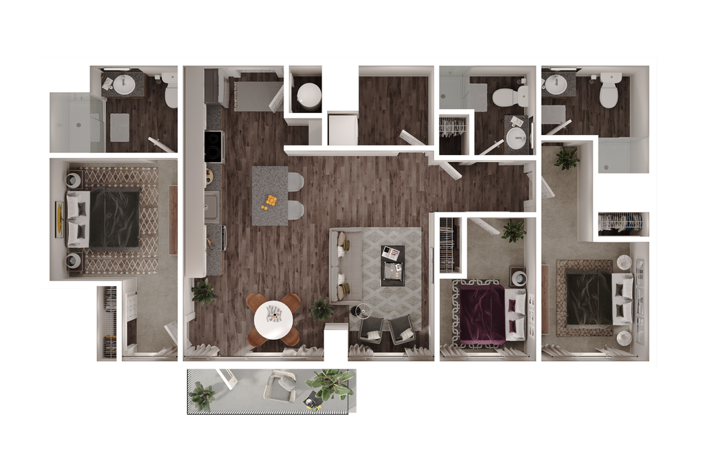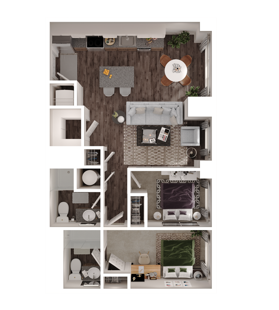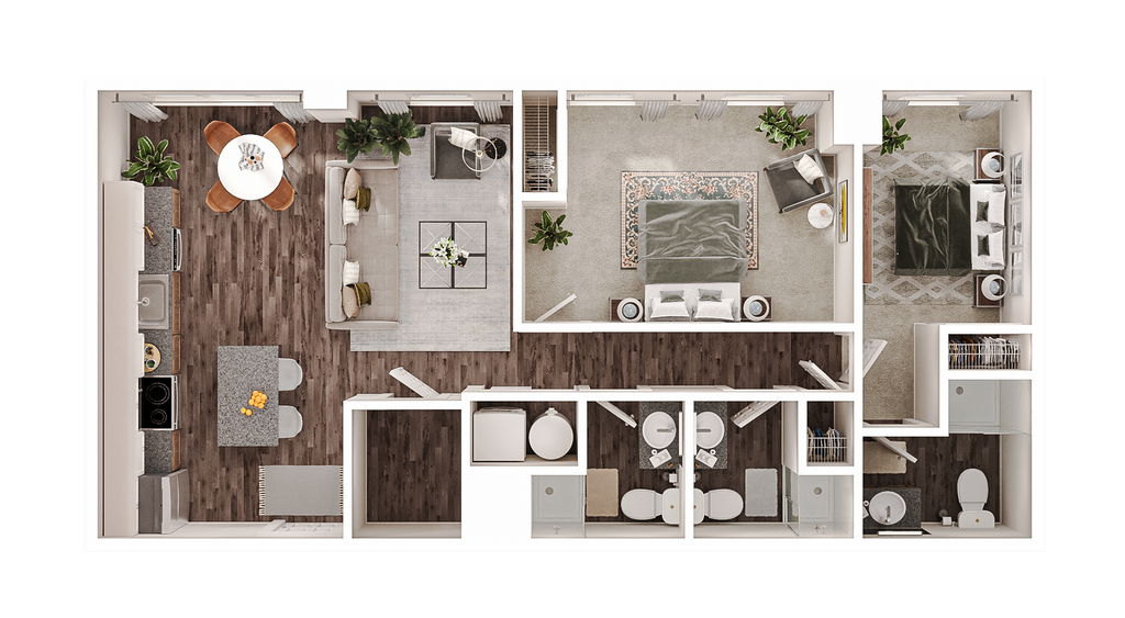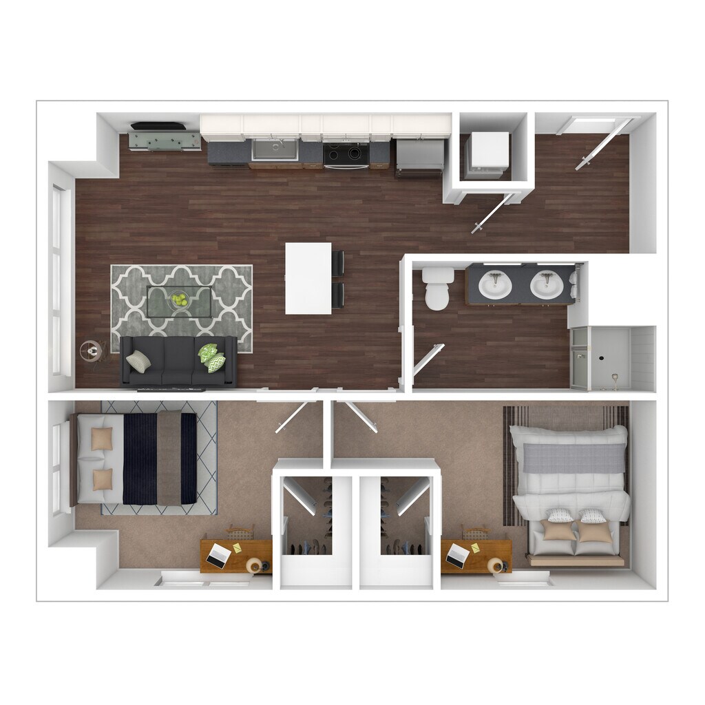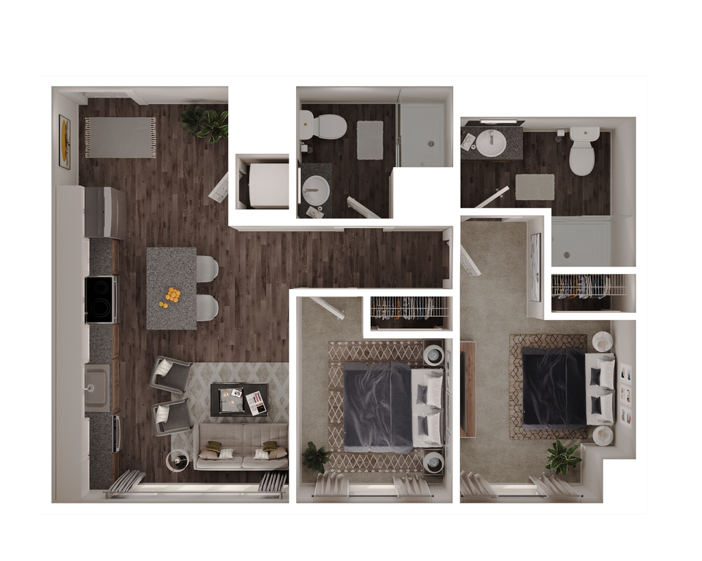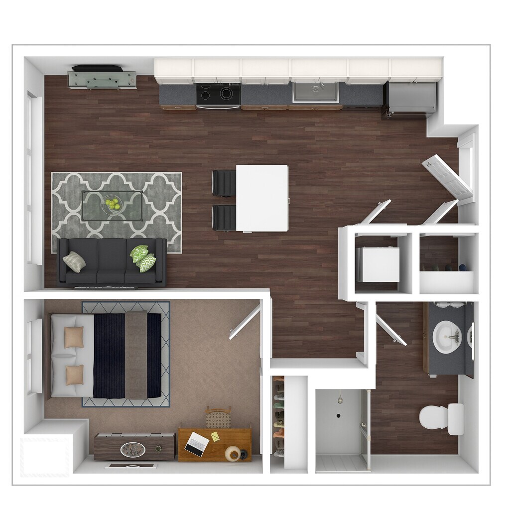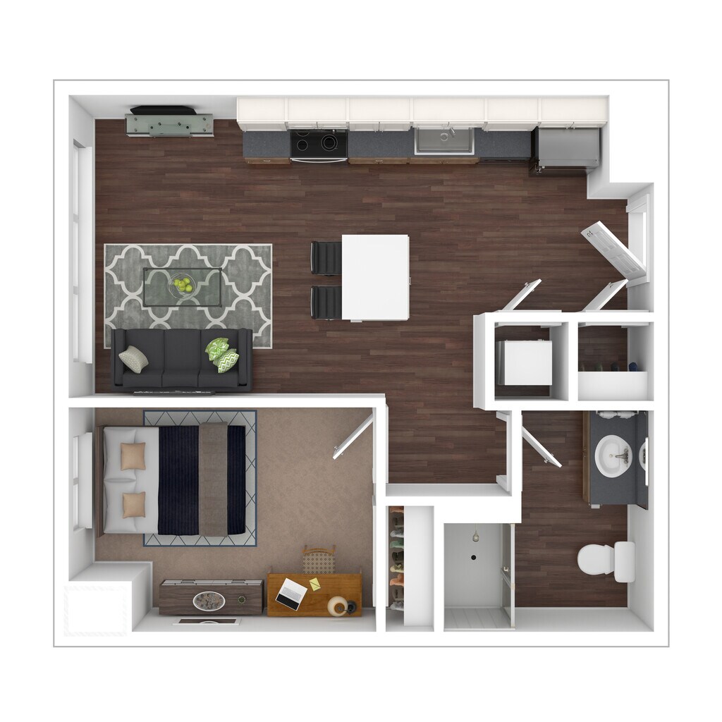 1 Dormitorio, 1 Baño, 600 pies²Disponible AhoraGalería del Modelo
