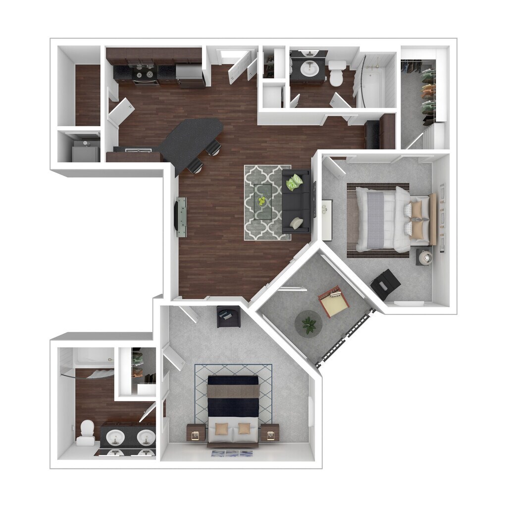 Modelo de apartamento: A1Desde $1,4501 Dormitorio, 1 Baño, 615 sq ftDisponible Ahora![]()