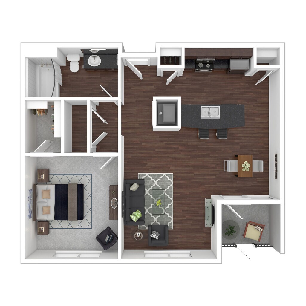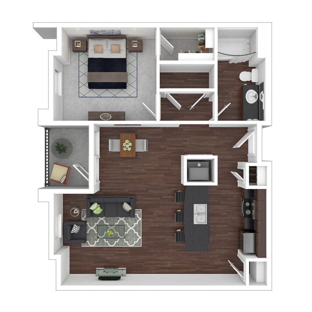 1 Dormitorio, 1 Baño, 615 pies²Disponible AhoraGalería del Modelo