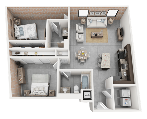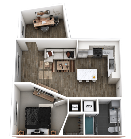 1 Dormitorio, 1 Baño, 615-619 pies²Disponible AhoraGalería del Modelo