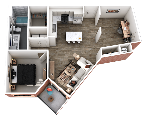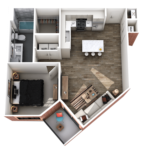 Modelo de apartamento: Arsenal - Ice House1 Dormitorio, 1 Baño, 598-654 sq ftDisponible Ahora![]()