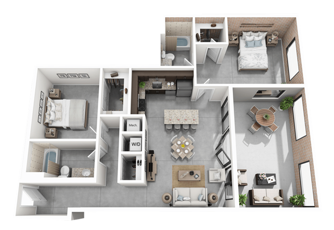 - Amplios planos de planta de 1, 2 y 3 habitaciones