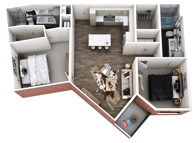 Modelo de apartamento: Kolsch1 Dormitorio, 1 Baño, 756 sq ftDisponible December 20, 2025![]()
