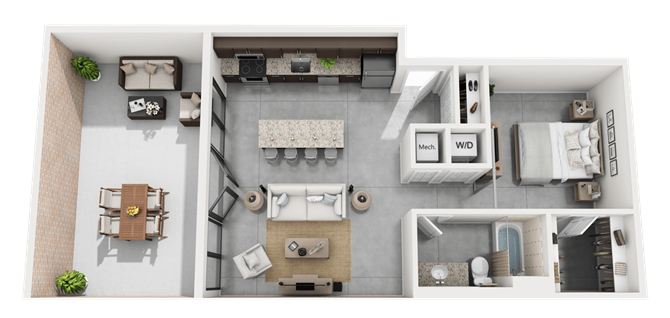 1 Dormitorio, 1 Baño, 690 pies²Disponible AhoraGalería del Modelo