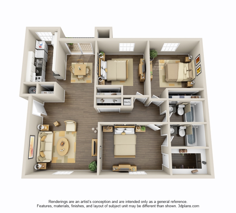Modelo de apartamento: Providence3 Dormitorios, 2 Baños, 1200 sq ftNo Disponible![]()