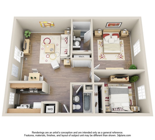 Modelo de apartamento: Newport2 Dormitorios, 2 Baños, 850 sq ftNo Disponible![]()
