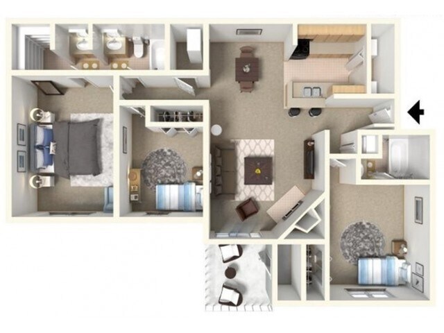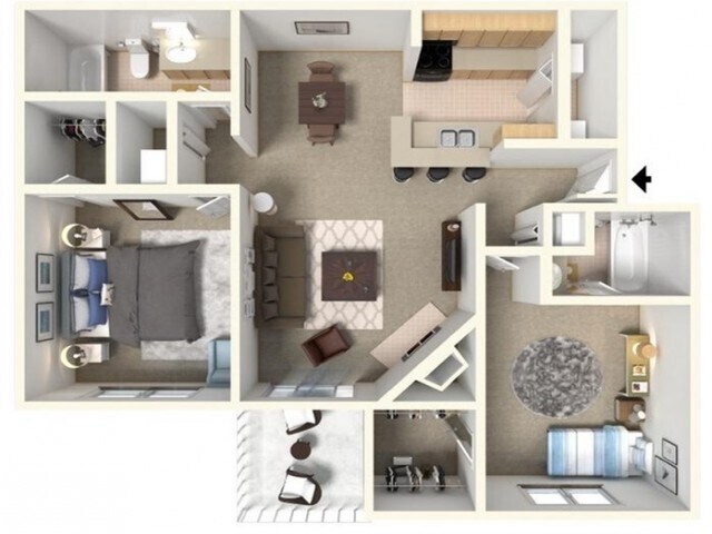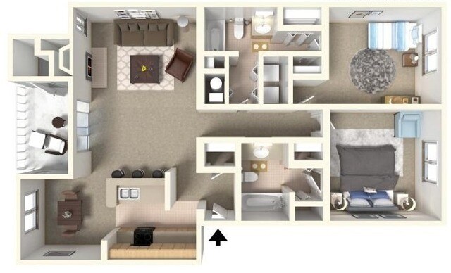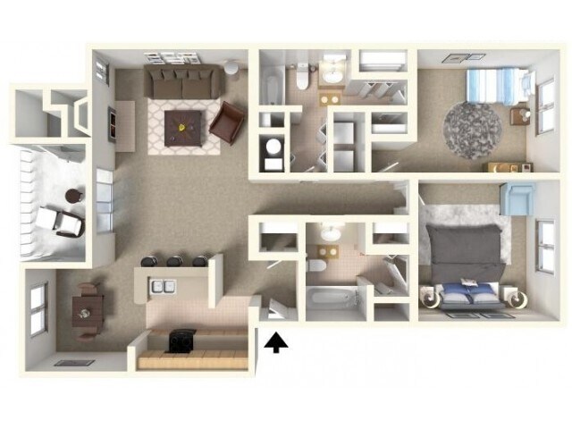 Modelo de apartamento: Blue Grass StakesDesde $1,5361 Dormitorio, 1 Baño, 798 sq ftNo Disponible![]()