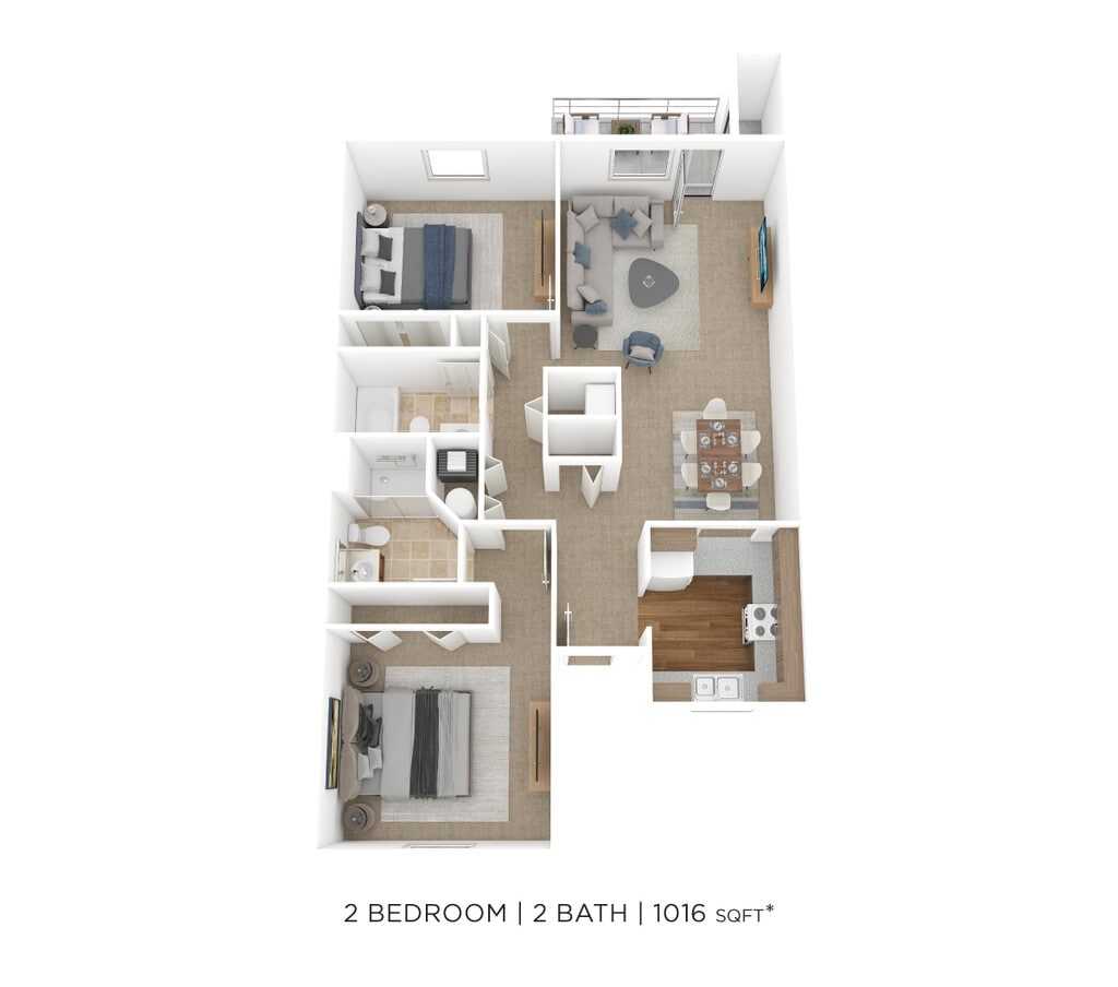 Modelo de apartamento: Two Bedroom 2 Bath- 1016 sqftDesde $1,1112 Dormitorios, 2 Baños, 1016 sq ftDisponible Ahora![]()