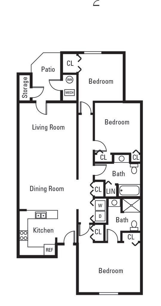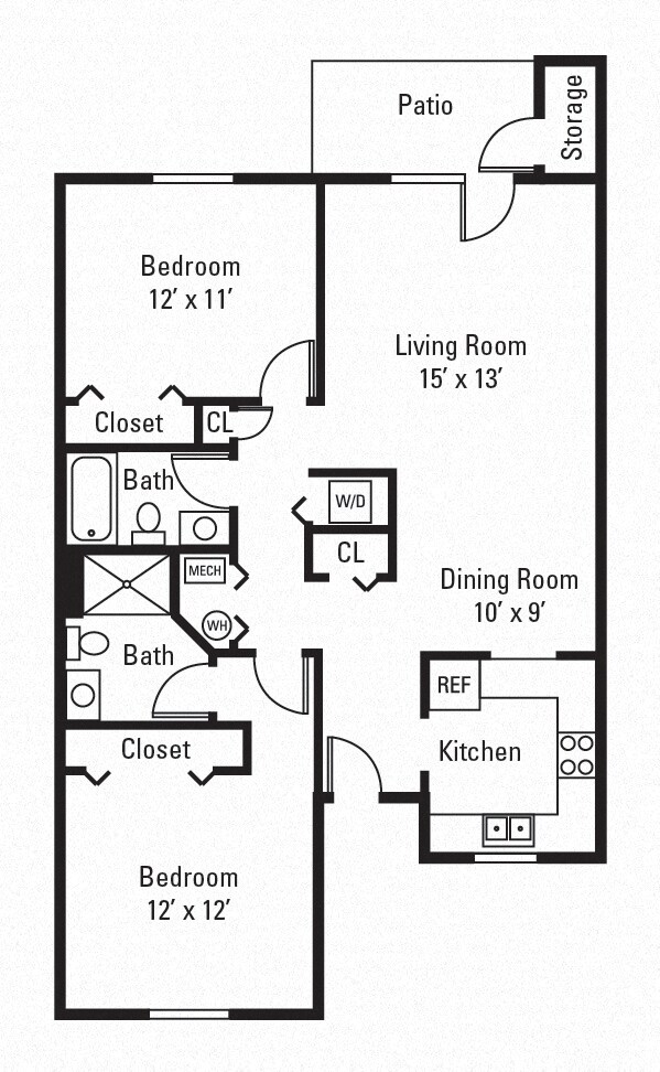 Modelo de apartamento: Two Bedroom 2 Bath Townhome- 1000 sqftLlame para Precios2 Dormitorios, 2 Baños, 1000 sq ftNo Disponible![]()