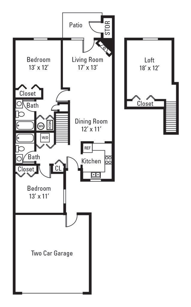 Two Bedroom 2 Bath Townhome- 1000 sqft - Plano 2 ![]()