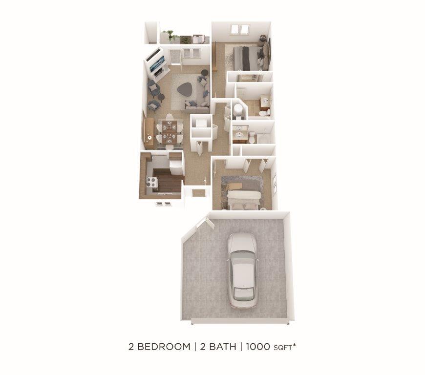 2 Dormitorios, 2 Baños, 1000 pies²Galería del Modelo