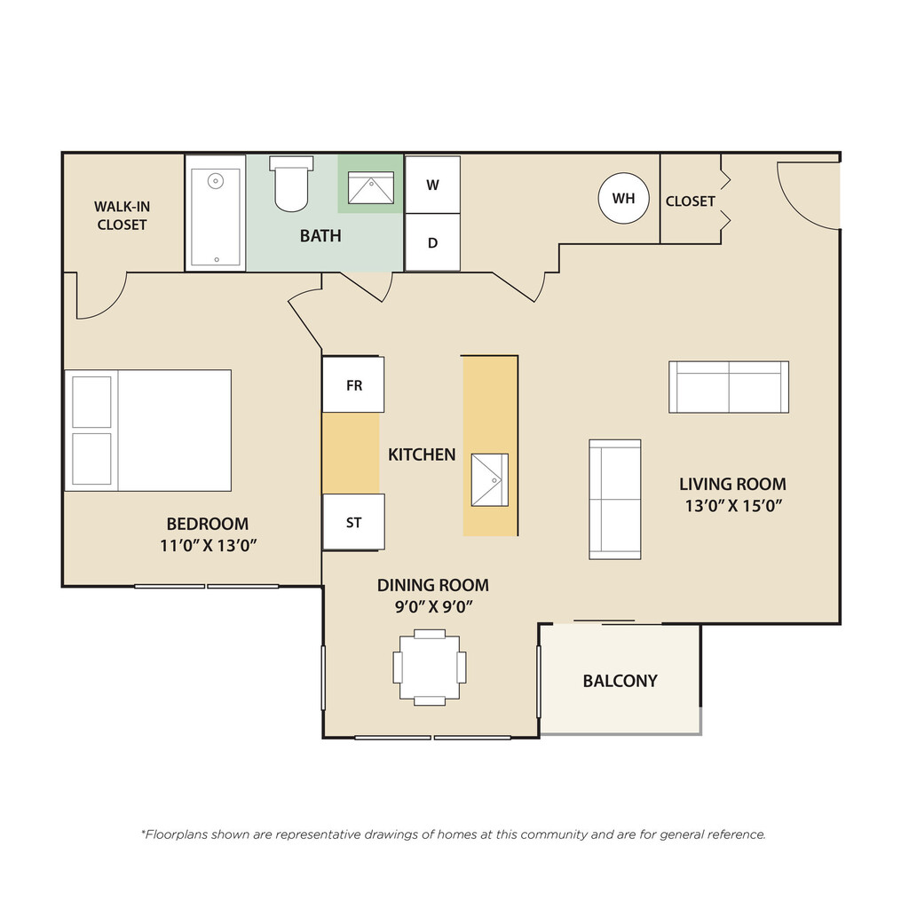 1 Dormitorio, 1 Baño, 713 pies²Disponible AhoraGalería del Modelo