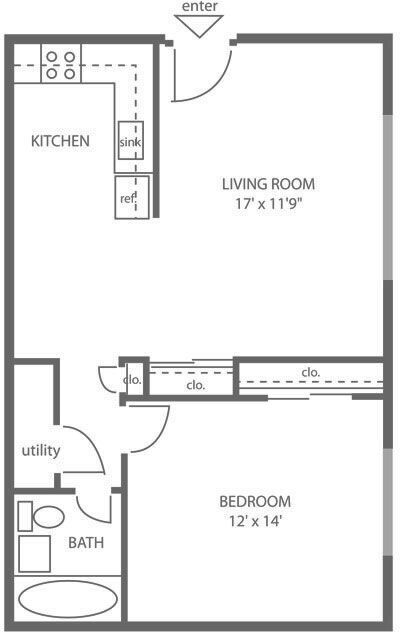 Modelo de apartamento: 2 Bed | 1 Bath2 Dormitorios, 1 Baño, 847 sq ftNo Disponible2 Bed | 1 Bath - Plano 1