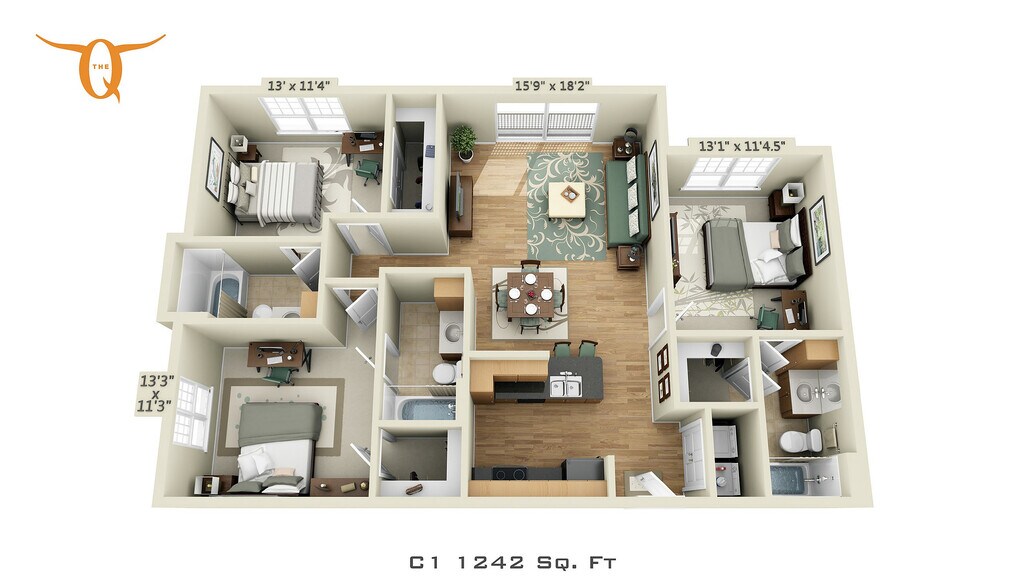 Modelo de apartamento: 3 bedroom 3 bathroom-C1Desde $1,2793 Dormitorios, 3 Baños, 1242 sq ftDisponible August 15, 2026![]()