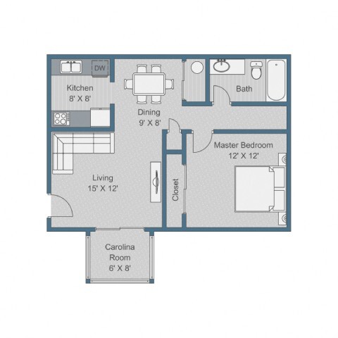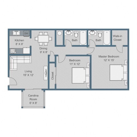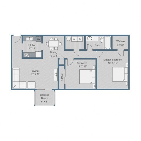 Modelo de apartamento: A2Desde $1,1411 Dormitorio, 1 Baño, 863 sq ftDisponible Ahora![]()