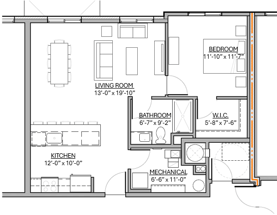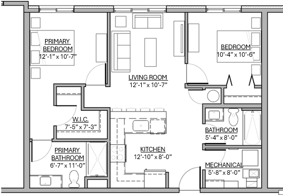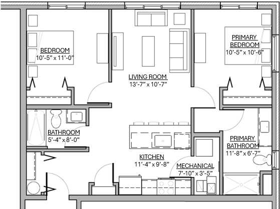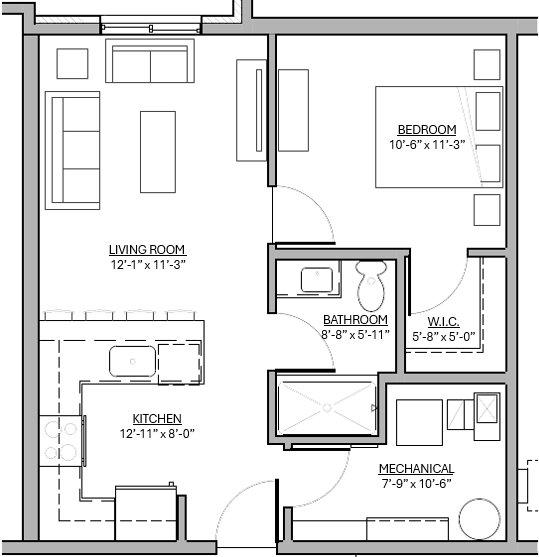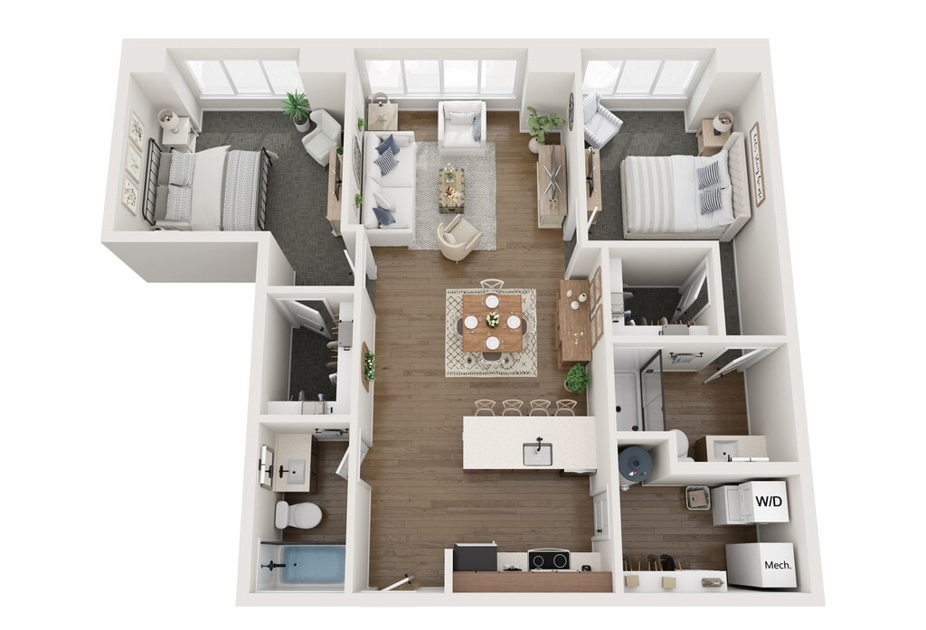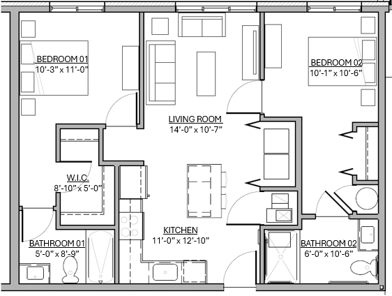 Modelo de apartamento: 103$1,6001 Dormitorio, 1 Baño, 766 sq ftDisponible December 10, 2025![]()