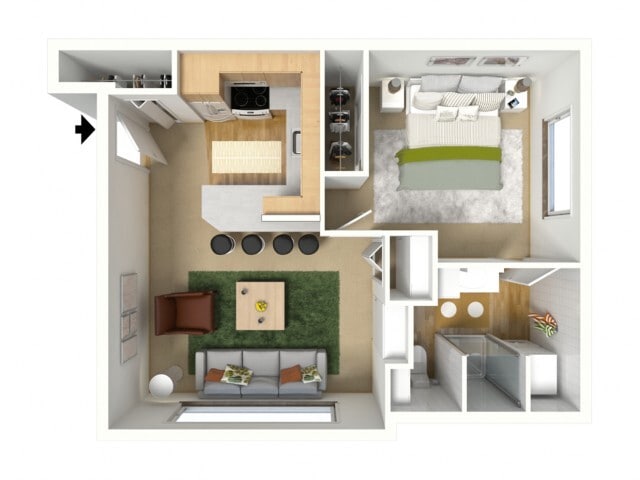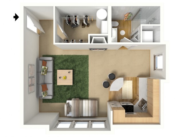 Modelo de apartamento: Bronze PlusLlame para Precios1 Dormitorio, 1 Baño, 562 sq ftNo Disponible![]()