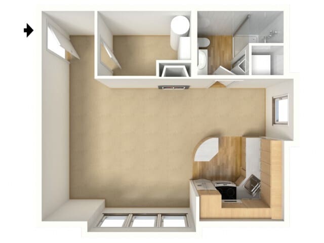 Modelo de apartamento: BronzeLlame para PreciosEstudio, 1 Baño, 522 sq ftNo Disponible![]()