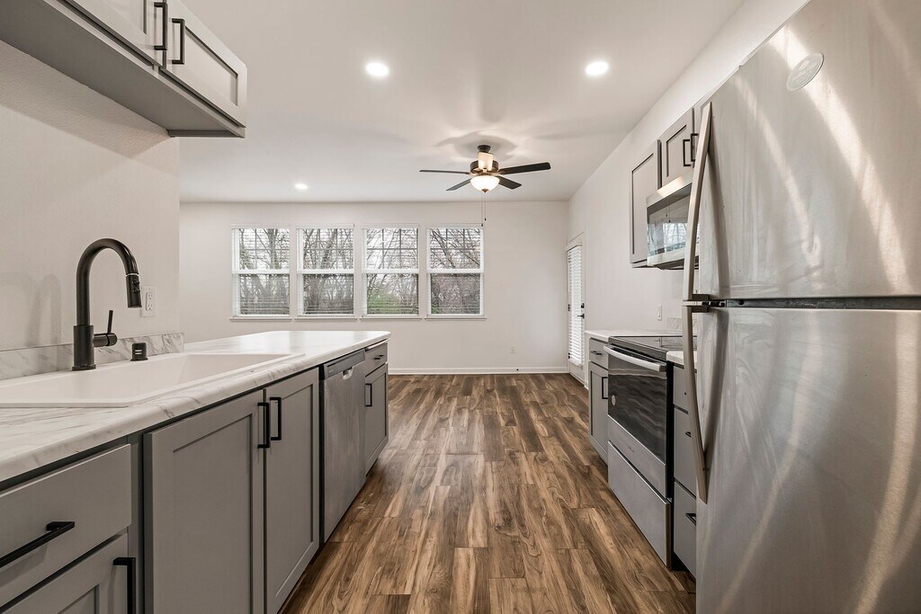 - Amplio espacio para gabinetes de cocina
