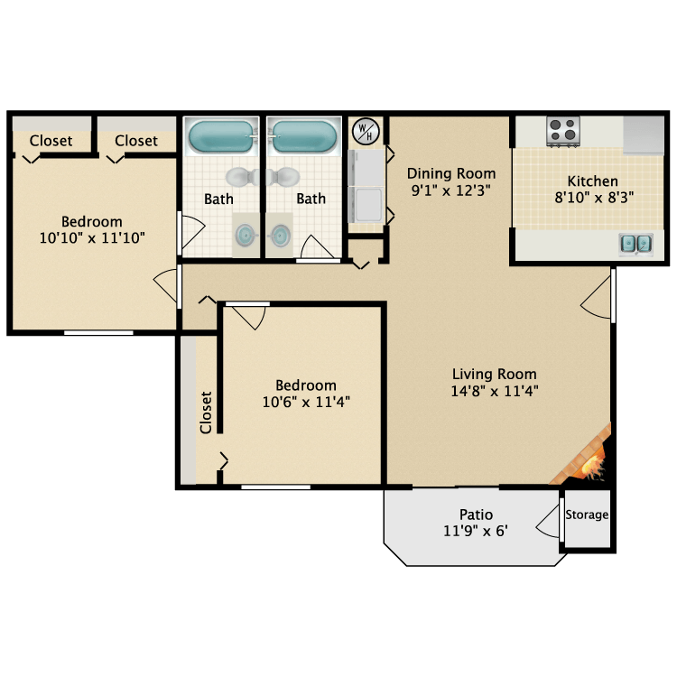 Modelo de apartamento: 2 Bed 2 Bath$2,1102 Dormitorios, 2 Baños, 930 sq ftDisponible AhoraPlanosFotos![]()
