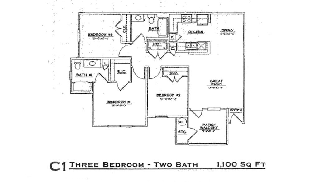 3 Dormitorios, 2 Baños, 1100 pies²Galería del Modelo