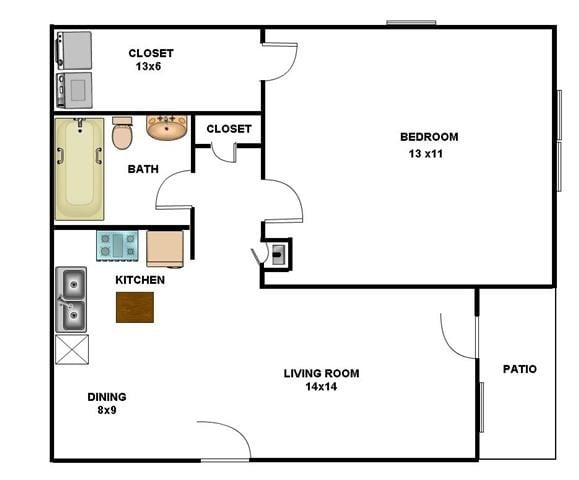 1 Dormitorio, 1 Baño, 725 pies²Disponible AhoraGalería del Modelo