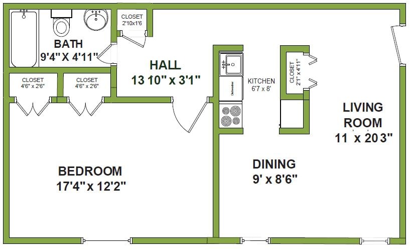 2BR/1.0BA - Imagen 10 Unidad de apartamento: 09FModelo de apartamento: 2BR/1.0BA$2,1502 Dormitorios, 1 Baño, 800 sq ftDisponible Ahora![]()