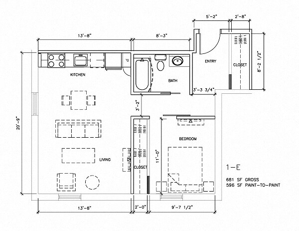 1 Dormitorio, 1 Baño, 596 pies²Galería del Modelo