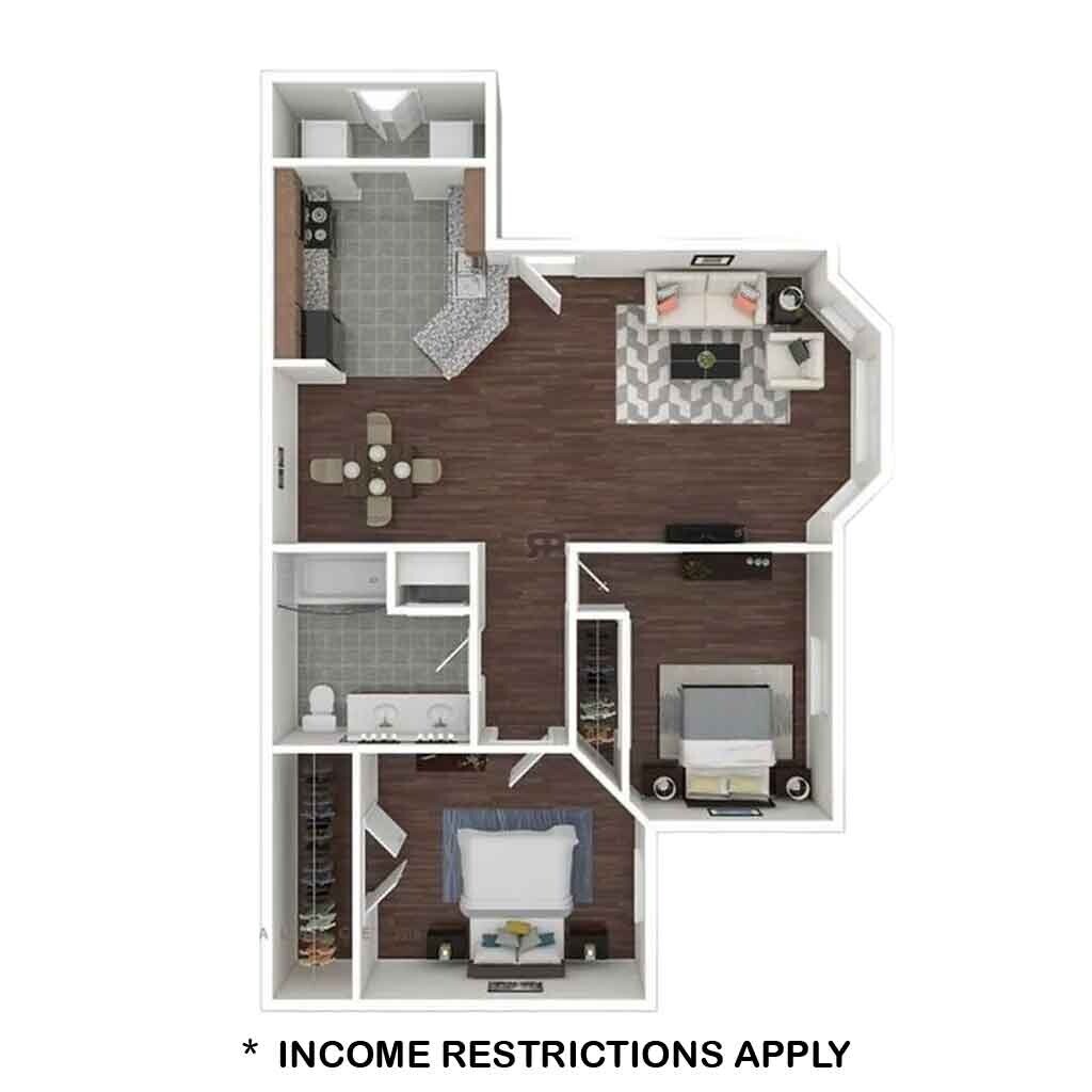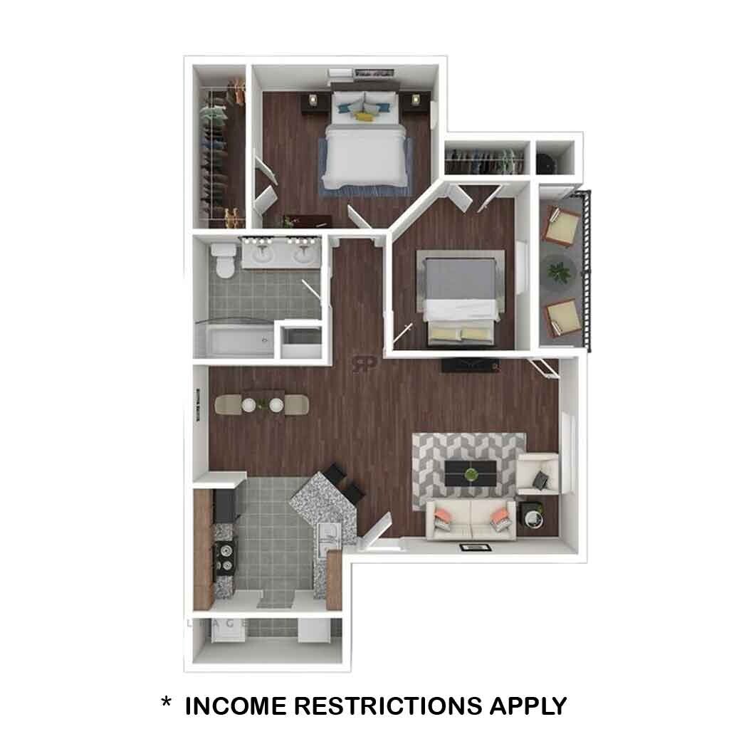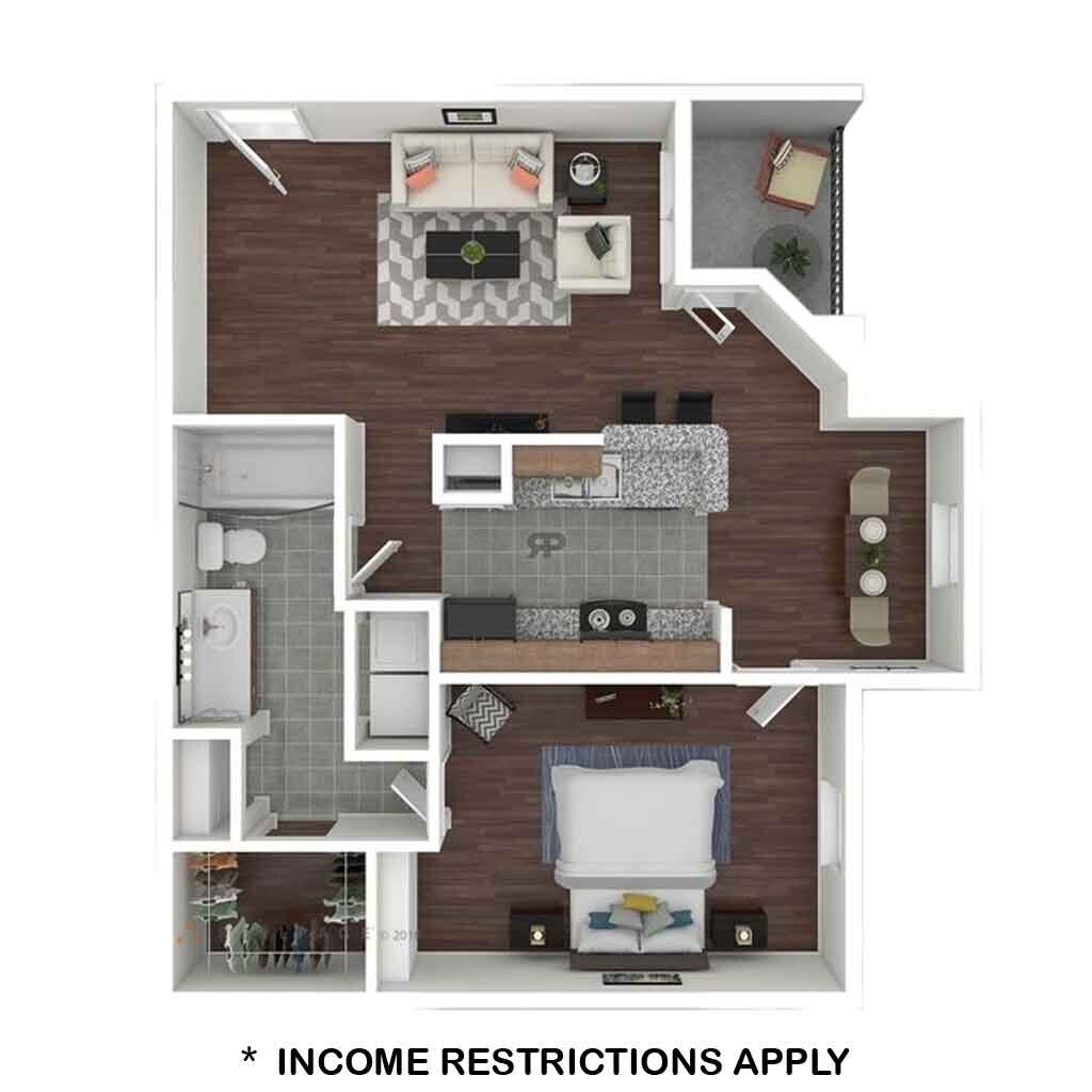 1 Dormitorio, 1 Baño, 755 pies²Disponible AhoraGalería del Modelo