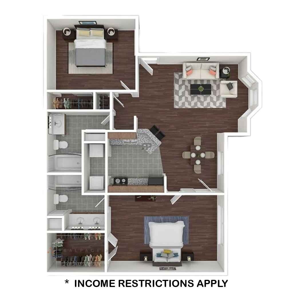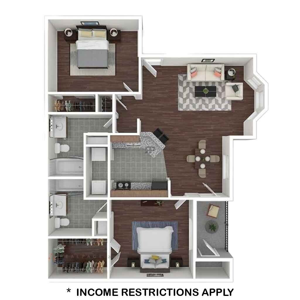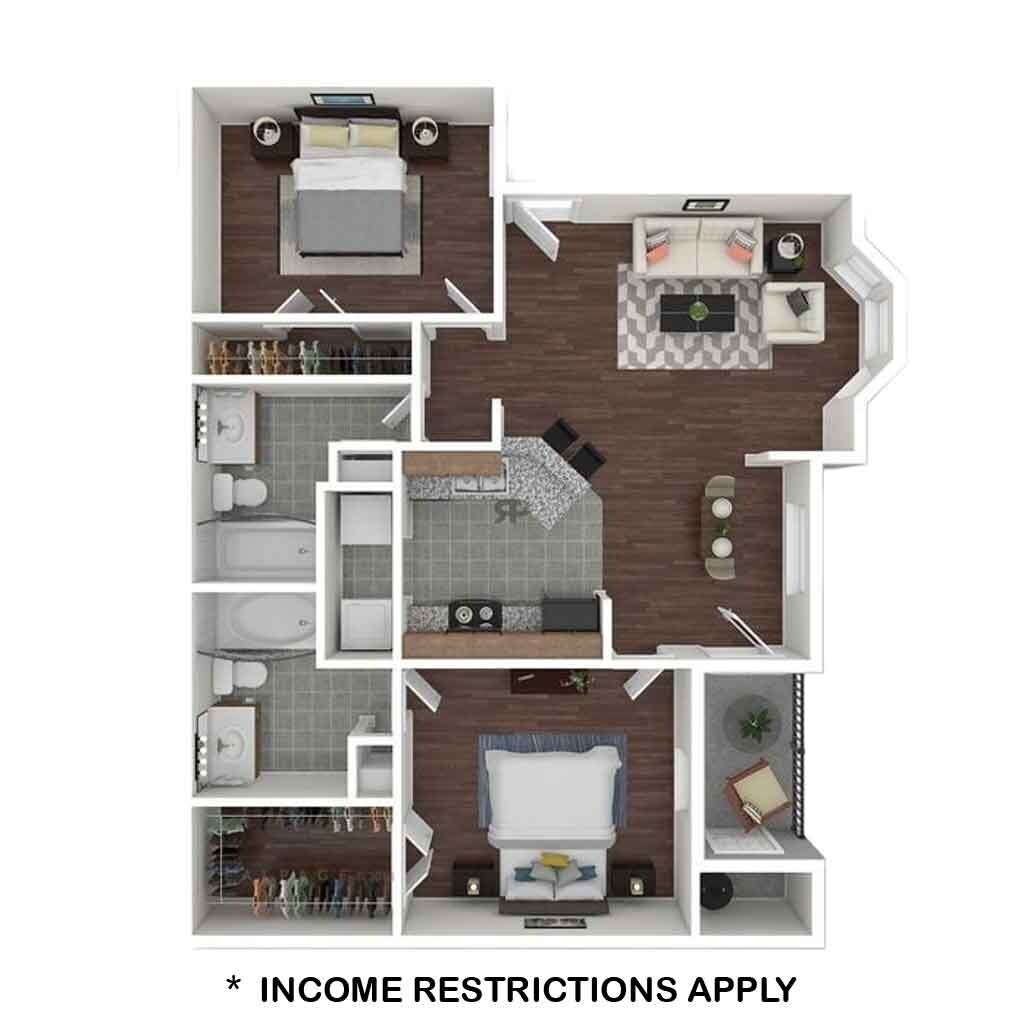 1 Dormitorio, 1 Baño, 755 pies²Disponible AhoraGalería del Modelo