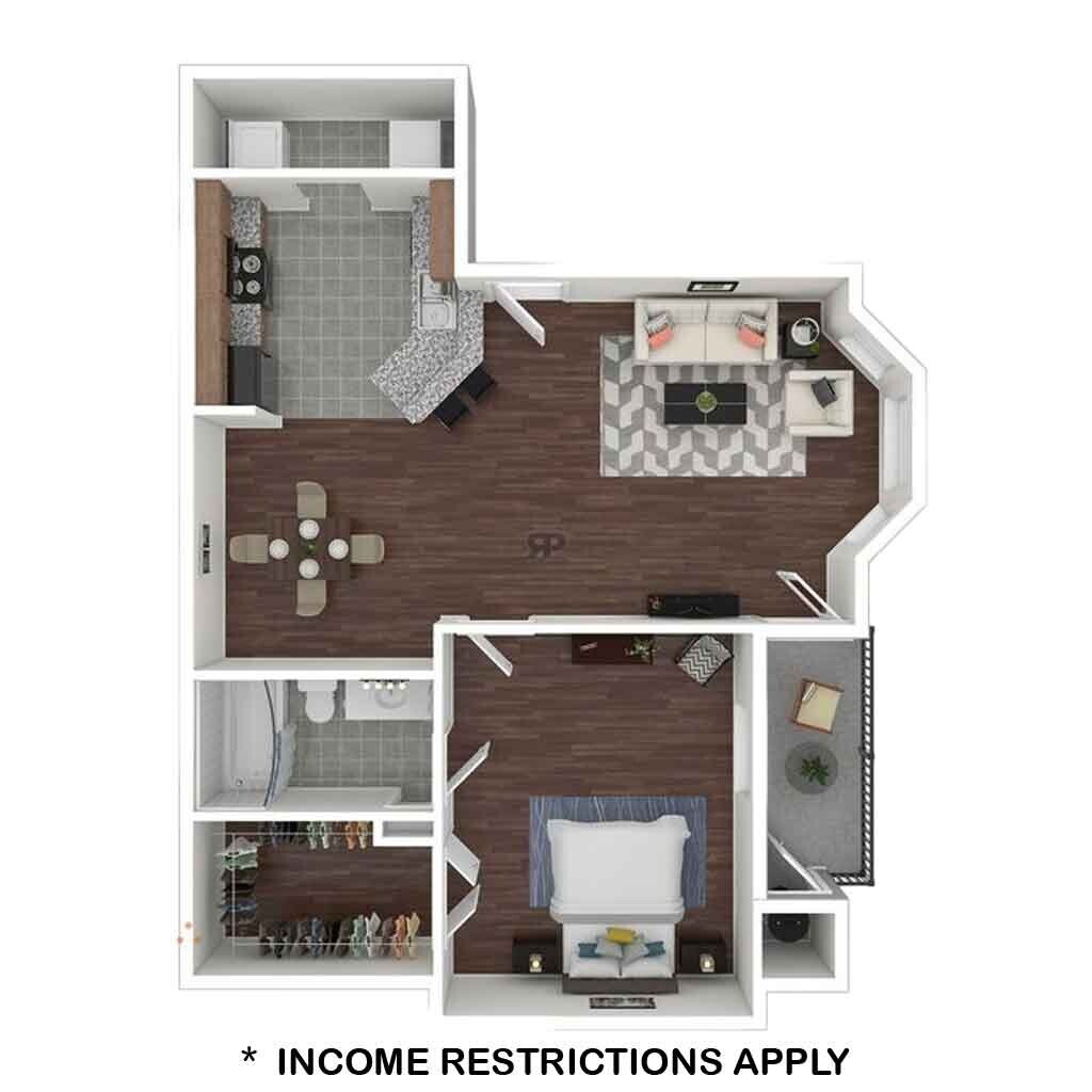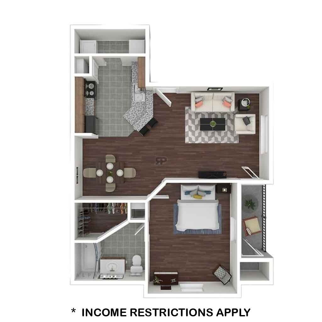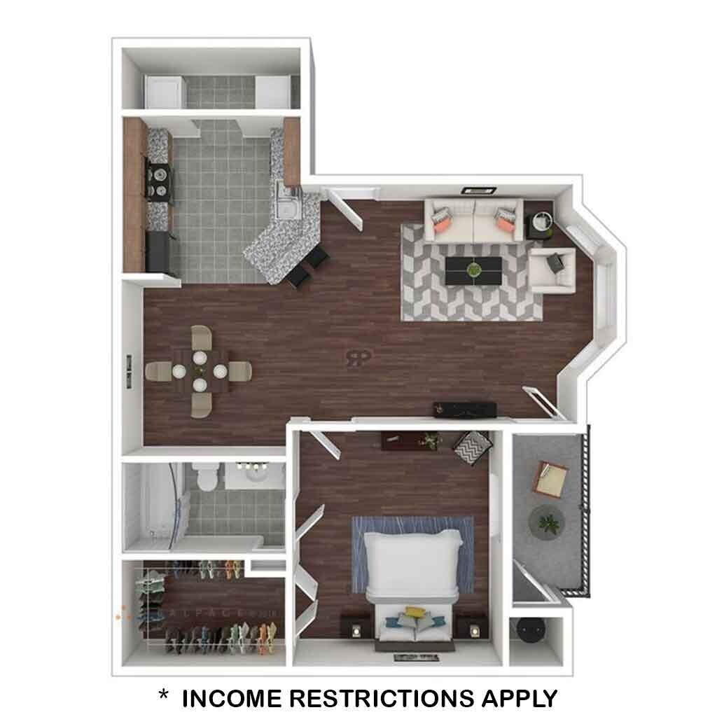 1 Dormitorio, 1 Baño, 695 pies²Disponible AhoraGalería del Modelo