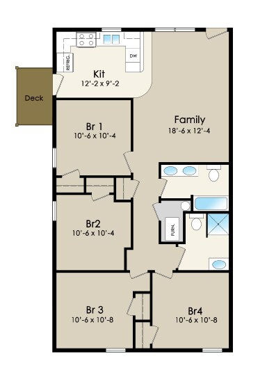 4 Dormitorios, 2 Baños, 1225 pies²Galería del Modelo