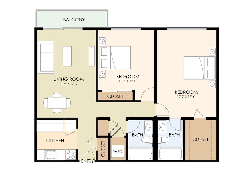 Modelo de apartamento: 2x2$3,2952 Dormitorios, 2 Baños, 920 sq ftDisponible AhoraPlanos3D Tours![]()