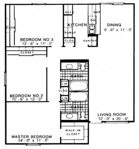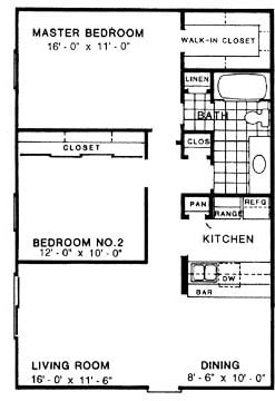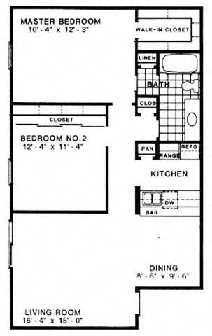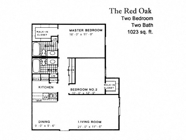 Modelo de apartamento: The Red Oak2 Dormitorios, 2 Baños, 1023 sq ftNo Disponible![]()