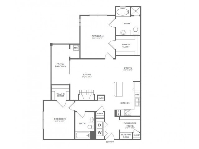 1 Dormitorio, 1 Baño, 850 pies²Precio Mensual TotalDisponible AhoraEl más grandeEsta opción tiene las unidades más grandes para este modeloGalería del Modelo