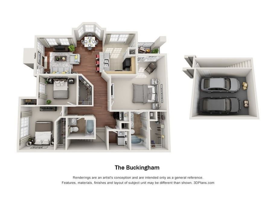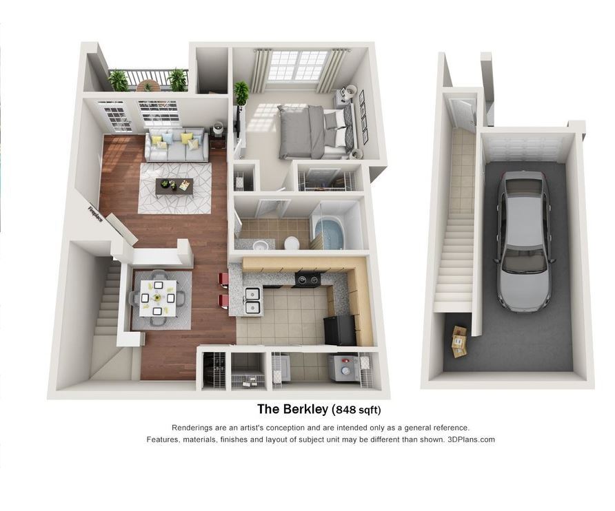 Modelo de apartamento: Berkley w/Garage1 Dormitorio, 1 Baño, 848 sq ftNo Disponible![]()
