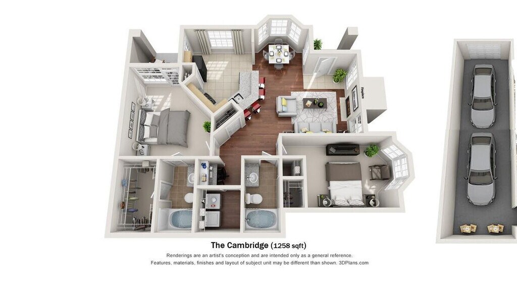 2 Dormitorios, 2 Baños, 1258 pies²Disponible AhoraGalería del Modelo