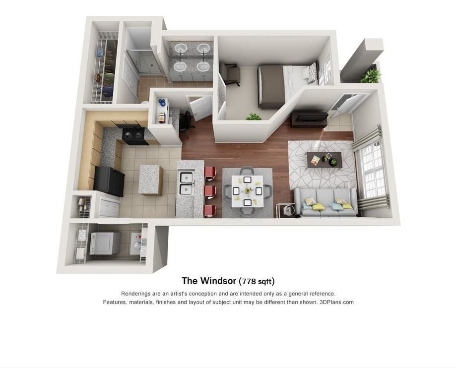 Modelo de apartamento: Windsor1 Dormitorio, 1 Baño, 779 sq ftNo DisponiblePlanosFotos![]()