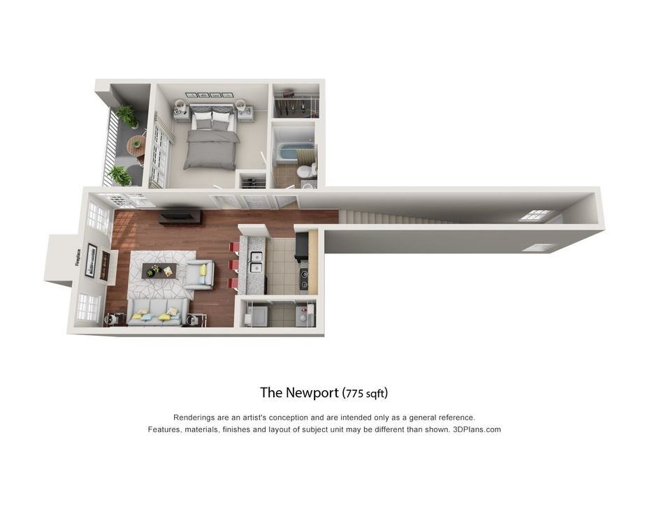 Modelo de apartamento: Newport w/Garage1 Dormitorio, 1 Baño, 775 sq ftDisponible Ahora![]()
