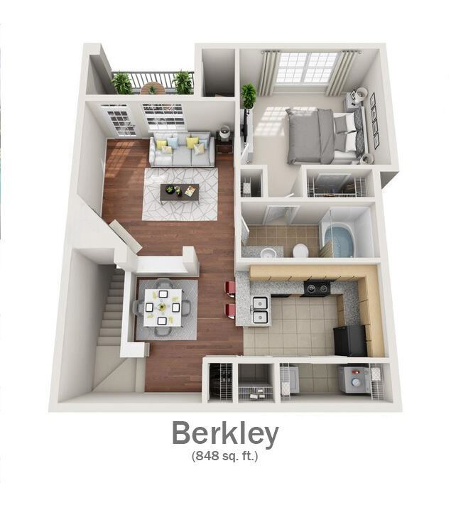 Modelo de apartamento: Berkley1 Dormitorio, 1 Baño, 848 sq ftNo DisponiblePlanosFotos![]()